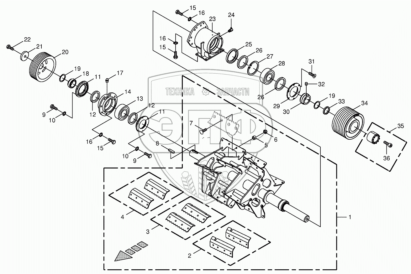 Каталог запасных частей к технике: KRONE BIG-X-650. Discharge accelerator/bearing