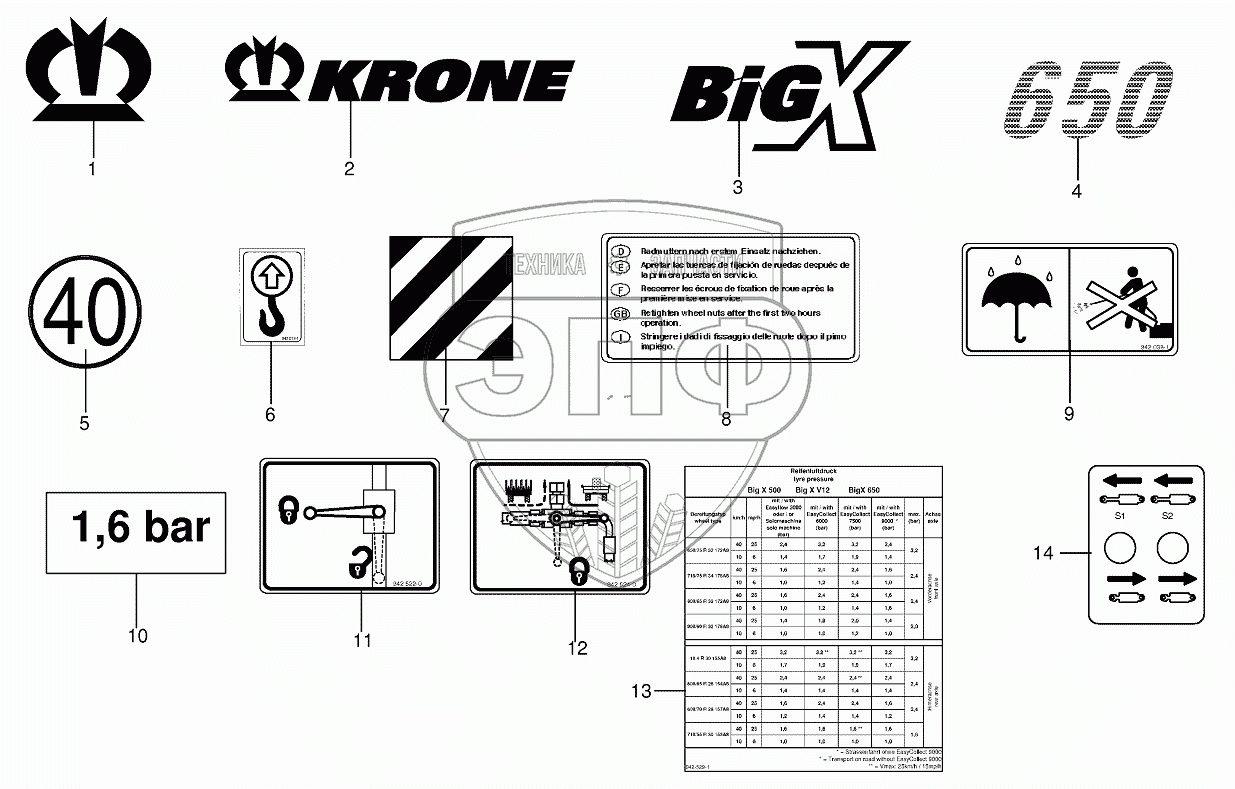 Каталог запасных частей к технике: KRONE BIG-X-650. General information labels