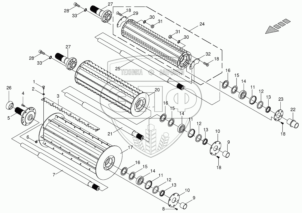 Каталог запасных частей к технике: KRONE BIG-X-650. Тoр feed rollers