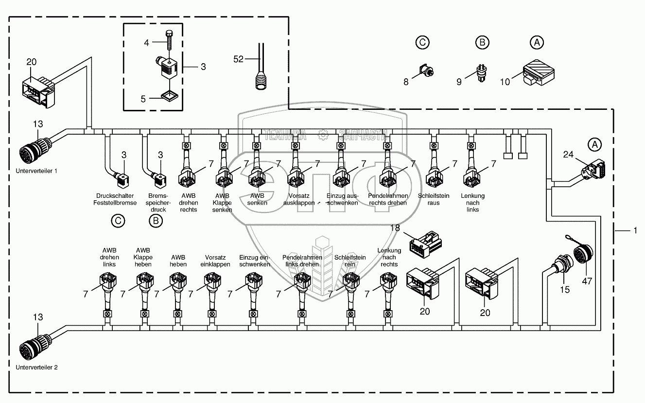 Каталог запасных частей к технике: KRONE BIG-X-650. Wiring Harness-valve lock