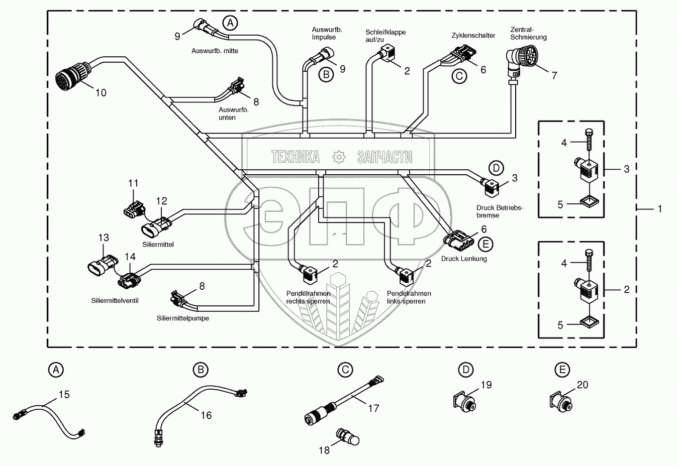 Каталог запасных частей к технике: KRONE BIG-X-650. Wiring harness- below the cabin