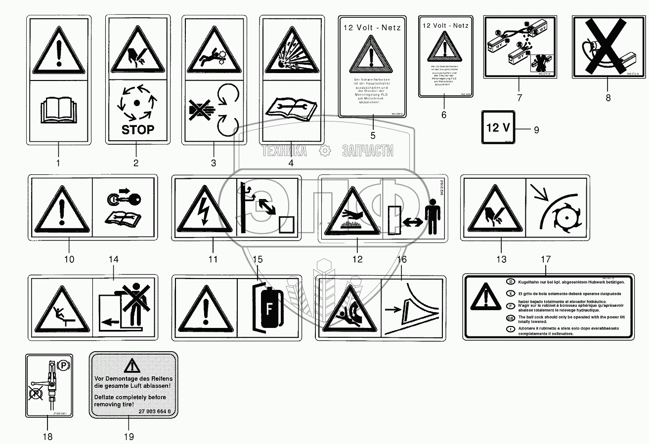 Каталог запасных частей к технике: KRONE BIG-X-650. Warning signs