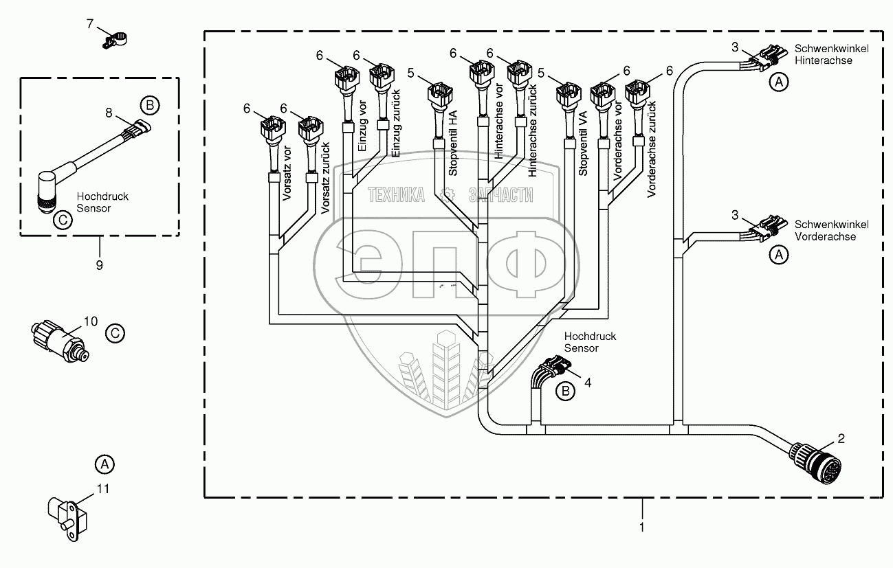 | 1 | 200805890 | Wiring harness-hydraulic pumps | Нет на складе | |