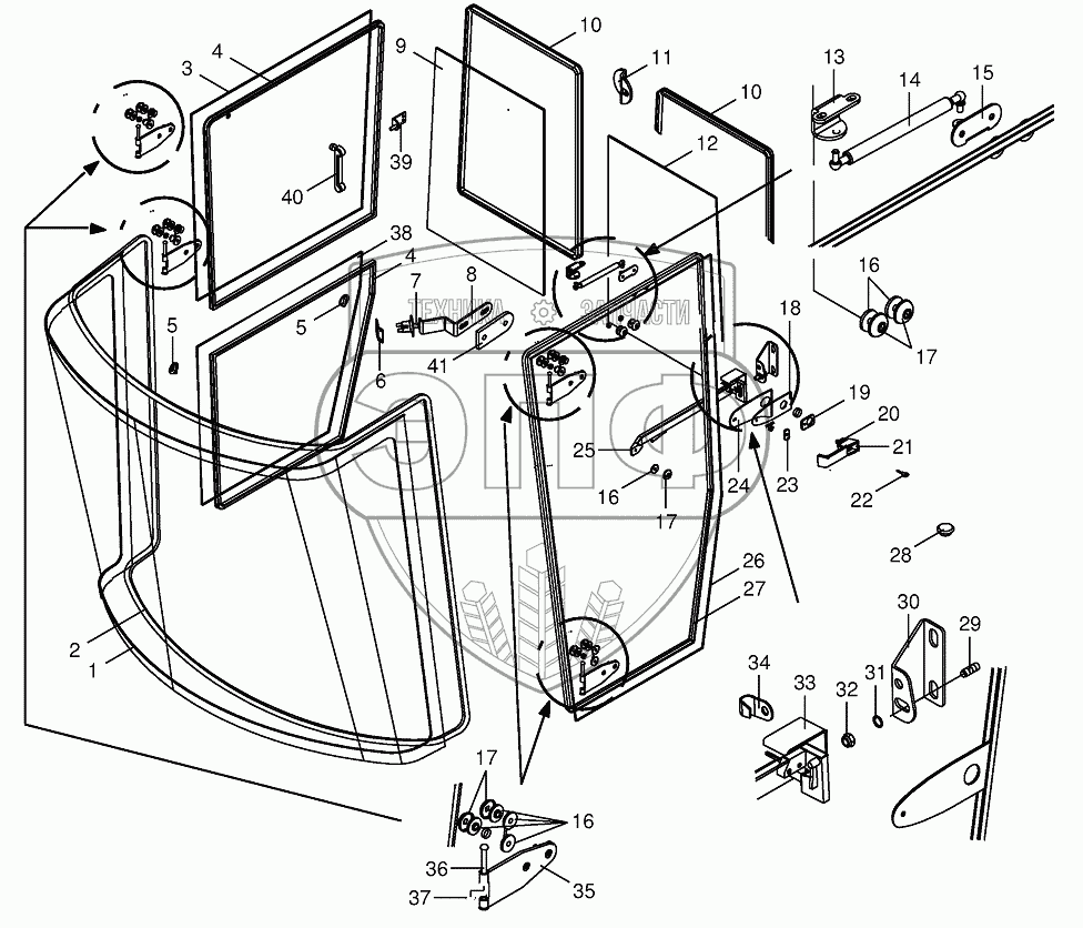 Каталог запасных частей к технике: KRONE BIG-X-650. Cab-glazing