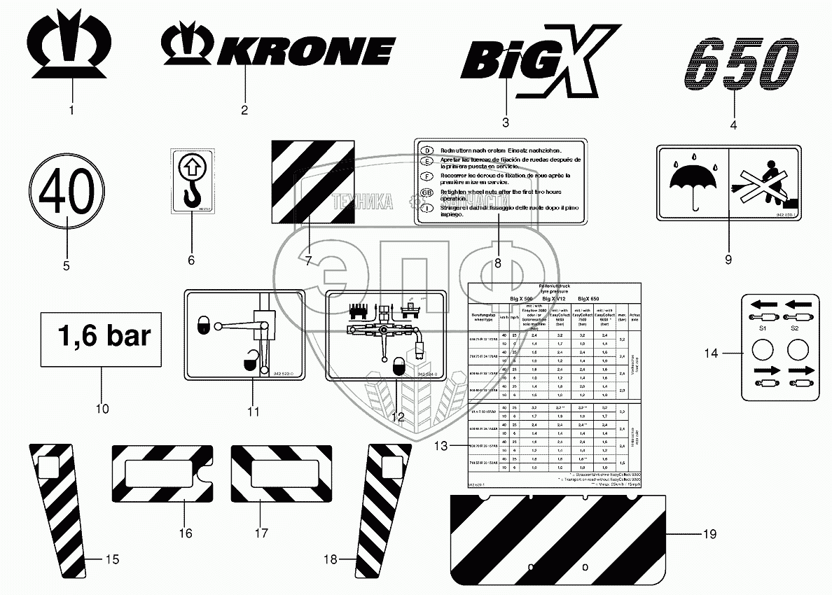 Каталог запасных частей к технике: KRONE BIG-X-650. General information labels