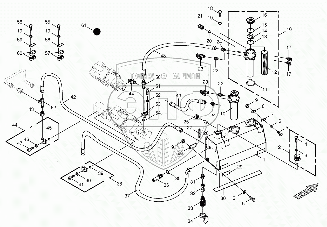 Каталог запасных частей к технике: KRONE BIG-X-650. Hydraulic tank/suction lines