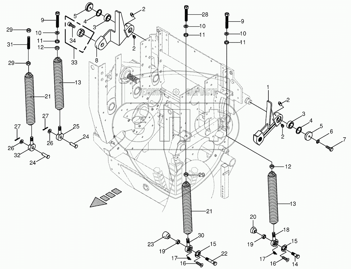 Каталог запасных частей к технике: KRONE BIG-X-650. Oscillating levers/Tension spring