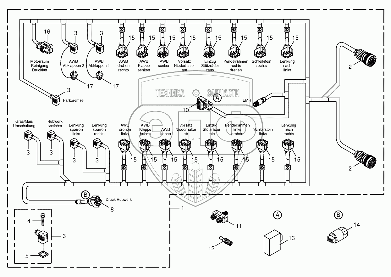 Каталог запасных частей к технике: KRONE BIG-X-650. Wiring Harness-valve block