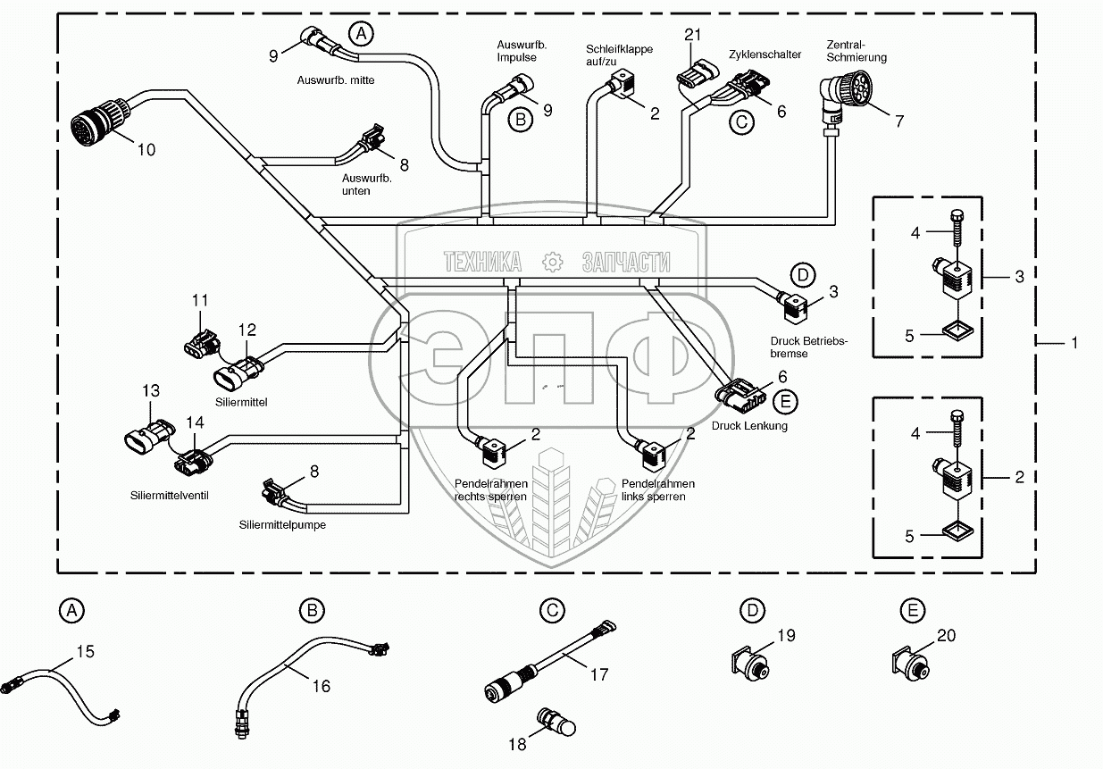 Каталог запасных частей к технике: KRONE BIG-X-650. Wiring harness-below the cabin