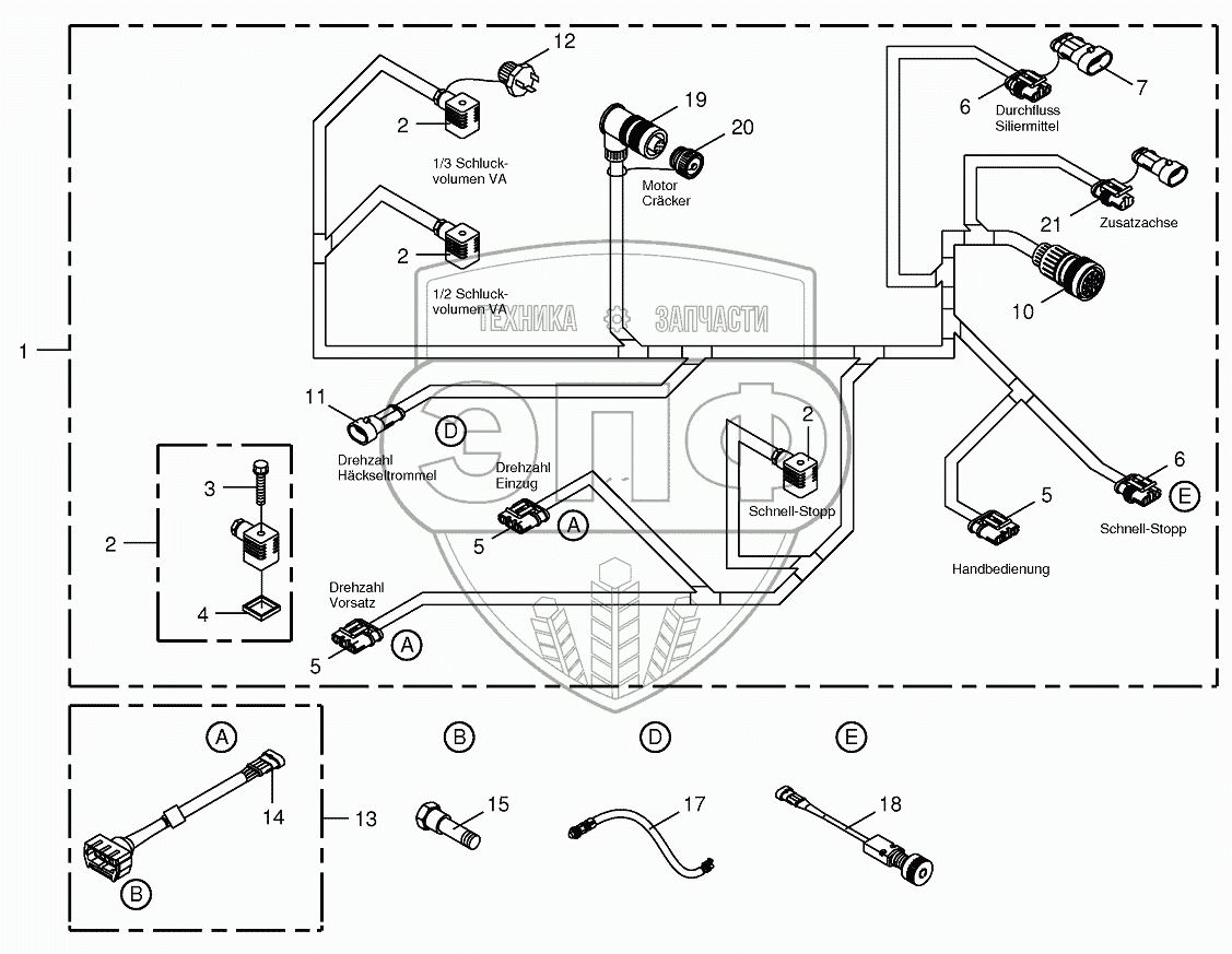 Каталог запасных частей к технике: KRONE BIG-X-650. Wiring Harness-lateral left