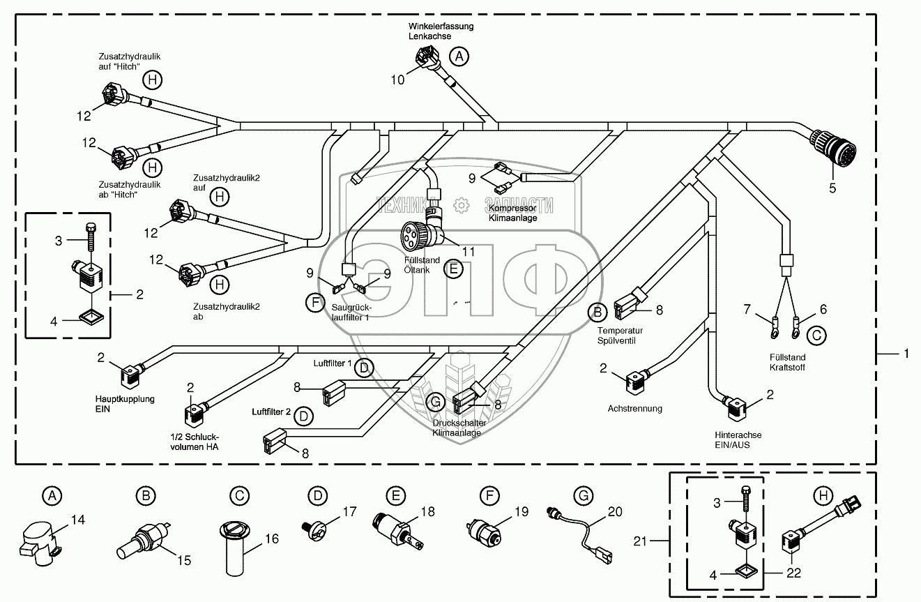 Каталог запасных частей к технике: KRONE BIG-X-650. Wiring Harness-rear/drive valve