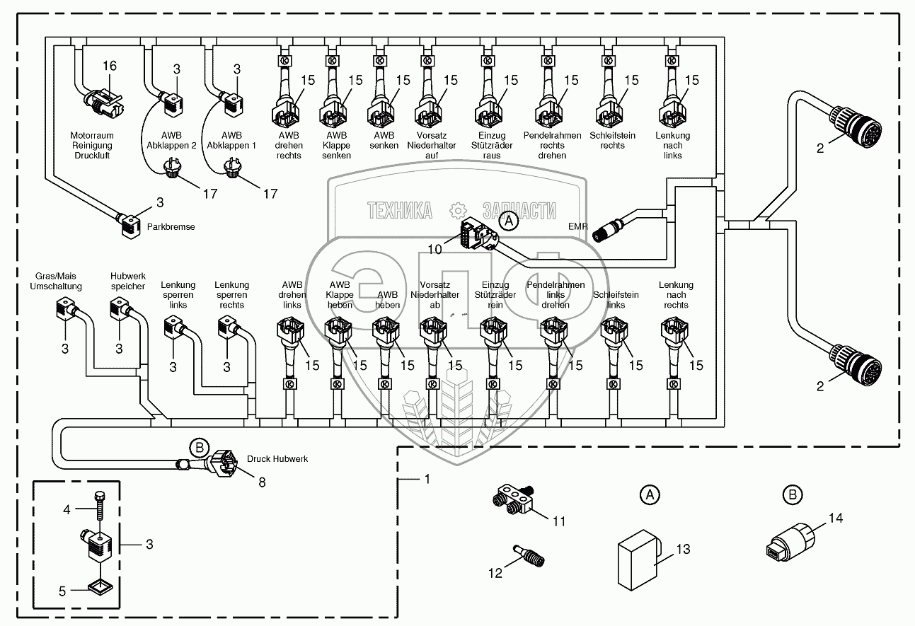 Каталог запасных частей к технике: KRONE BIG-X-650. Wiring Harness-valve block