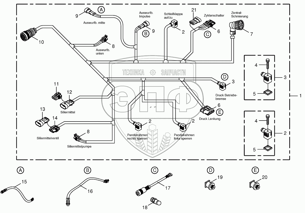 Каталог запасных частей к технике: KRONE BIG-X-700. Wiring harness-below the cabin