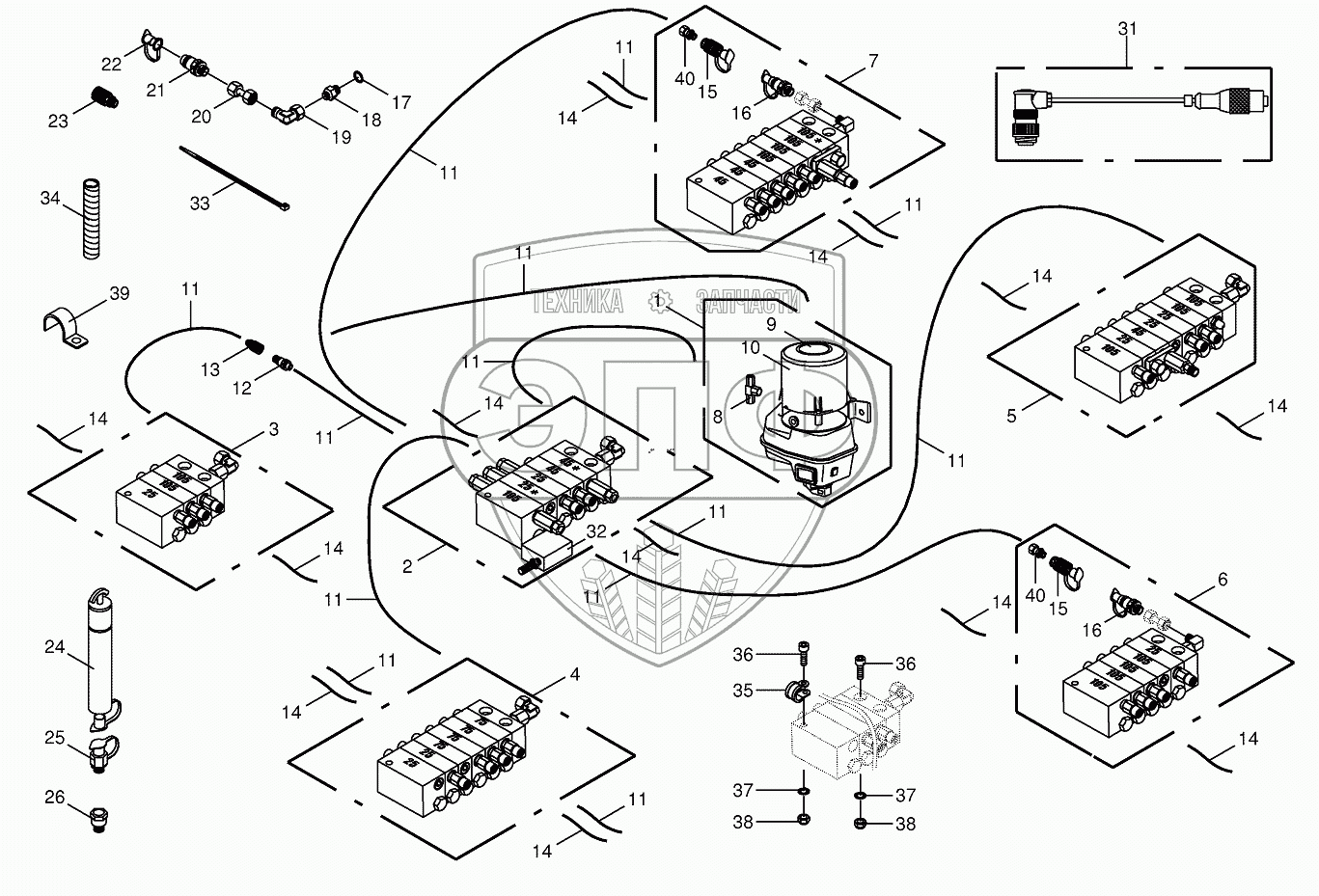 | 7 | 270089130 | Combination of distributors - feed system | Нет на складе | |