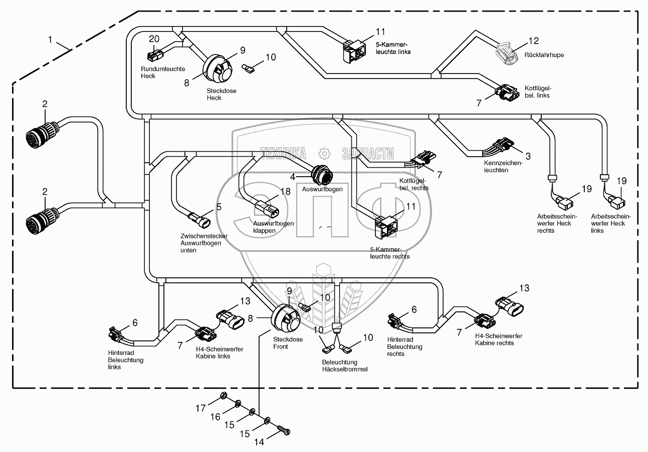 Каталог запасных частей к технике: KRONE BIG-X-700-1. Wiring Harness-lighting-back