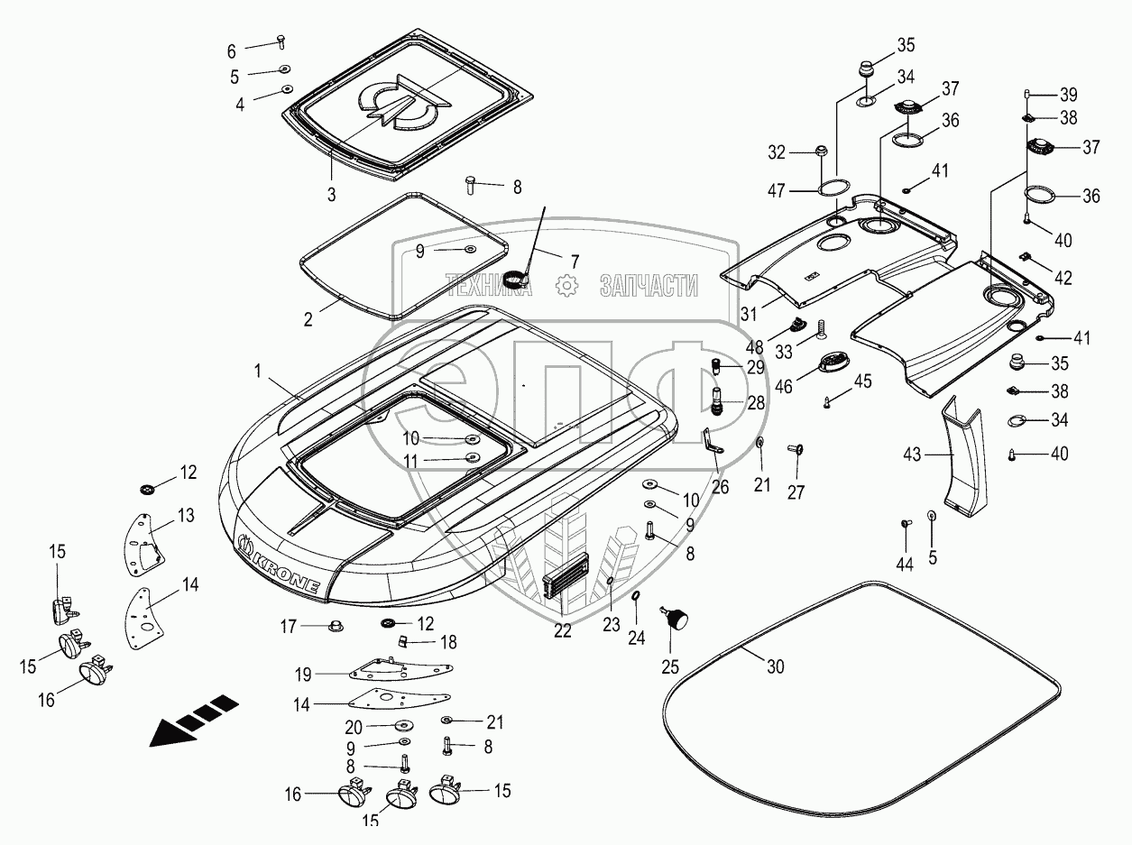 Каталог запасных частей к технике: KRONE BIG-X-700-1. Cab - roof