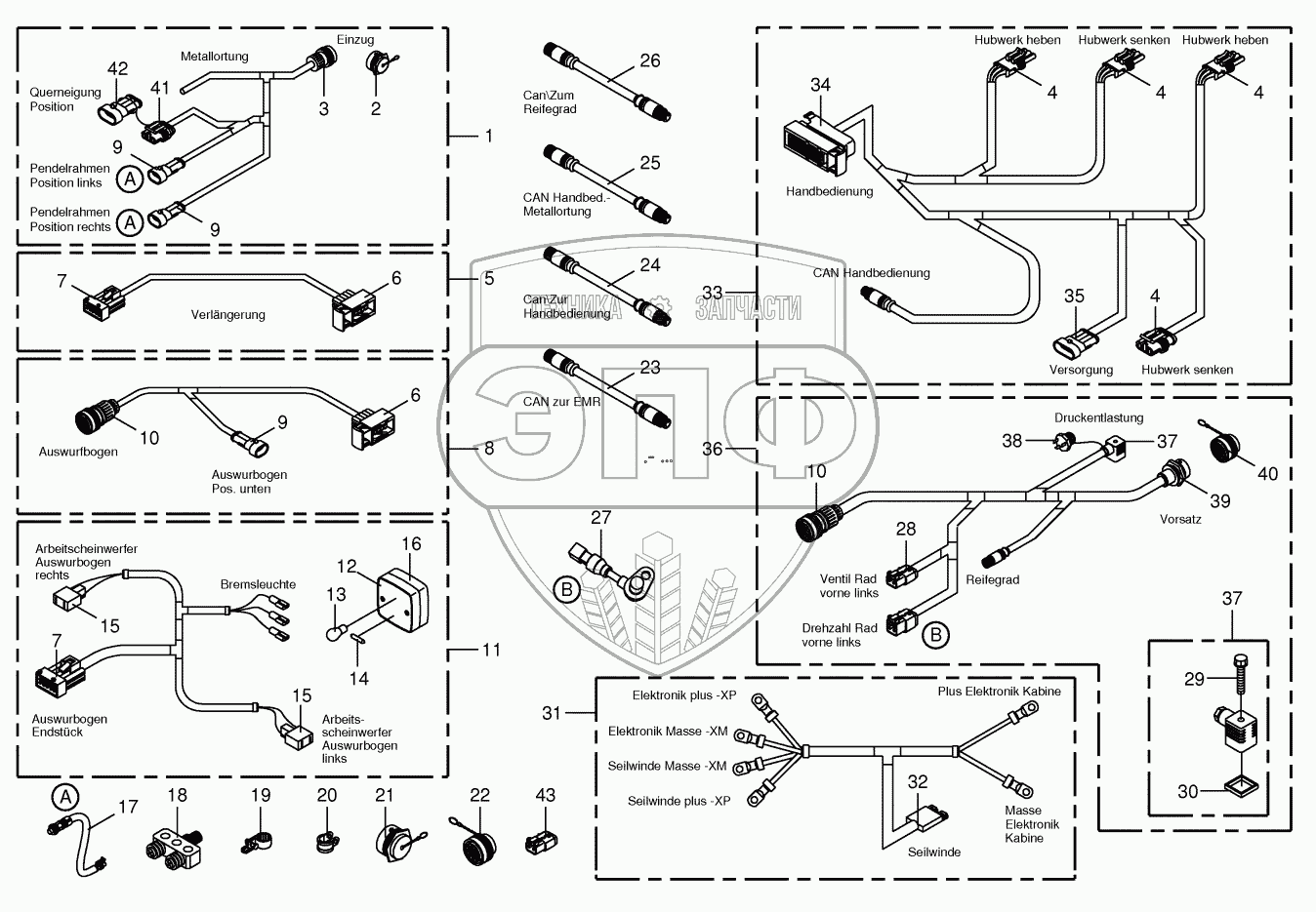 | 31 | 200800381 | Wiring harness-rope winch / electronics cab | Нет на складе | |