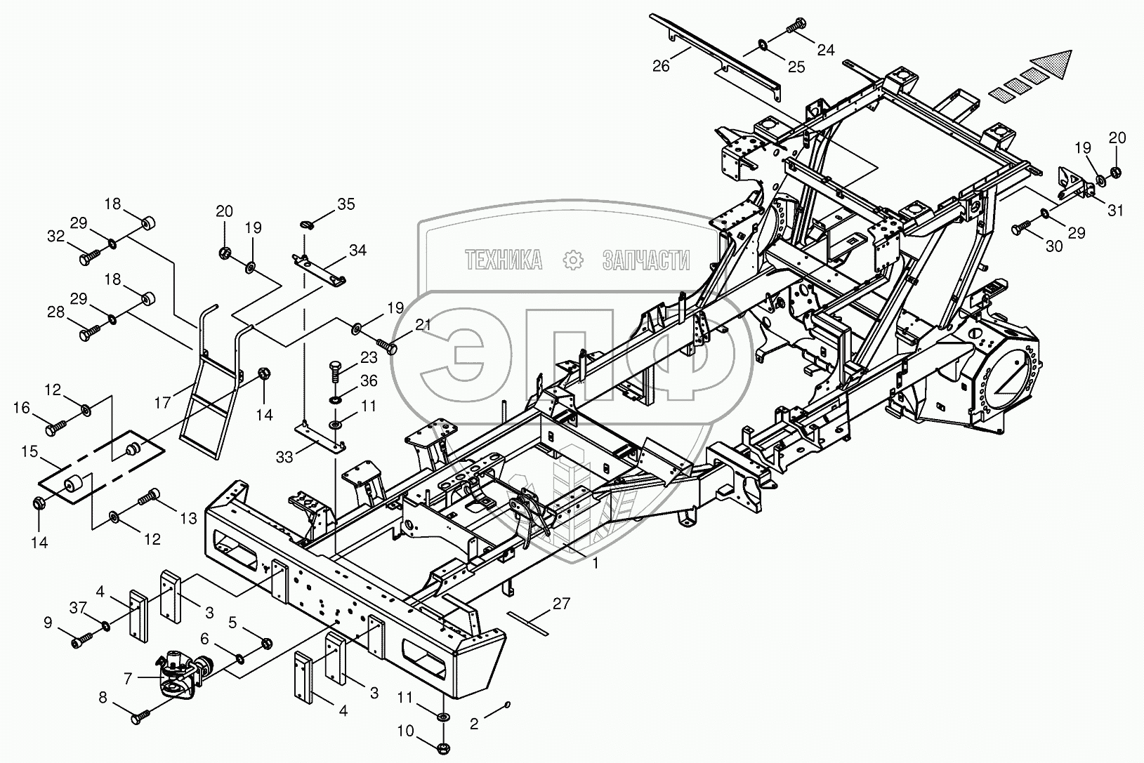 Каталог запасных частей к технике: KRONE BIG-X-700. Frame/trailer hitch/ascending ladder