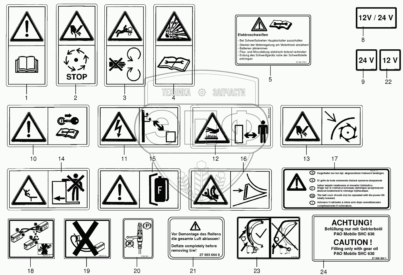 Каталог запасных частей к технике: KRONE BIG-X-850/1100. Warning signs