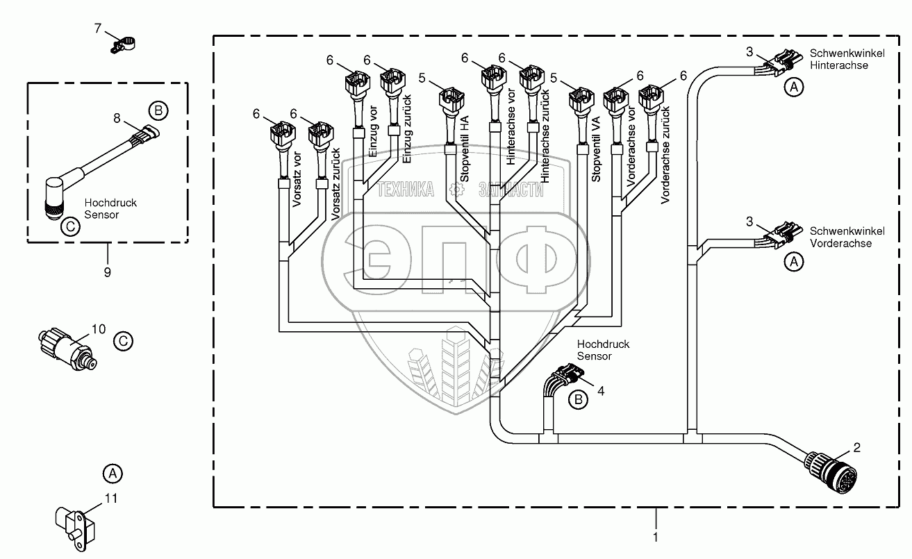 | 1 | 200805890 | Wiring harness-hydraulic pumps | Нет на складе | |
