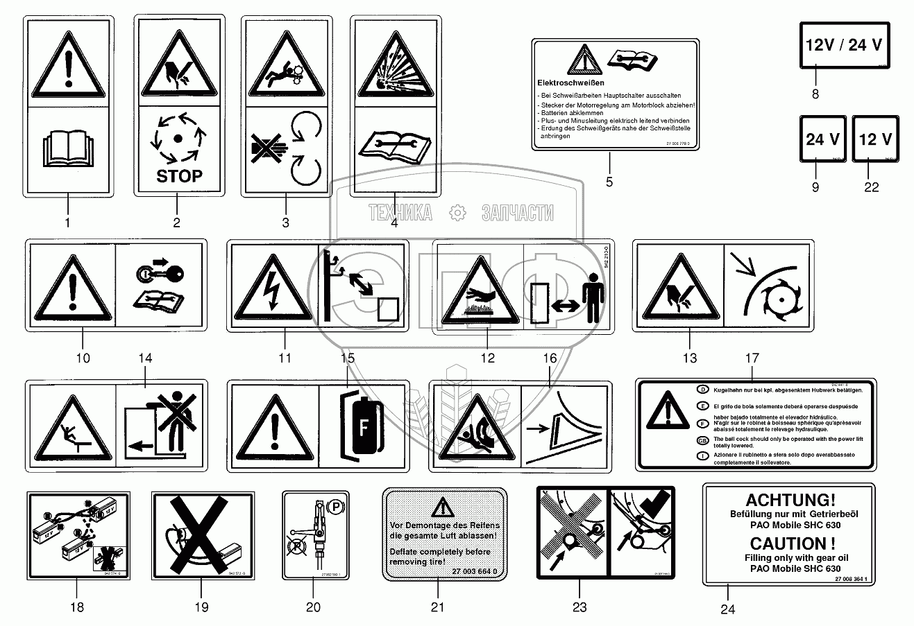 Каталог запасных частей к технике: KRONE BIG-X-850-1/1100-1. Warning signs