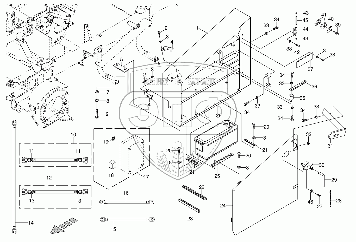 Каталог запасных частей к технике: KRONE BIG-X-V8/BIG-X-V12. Battery box