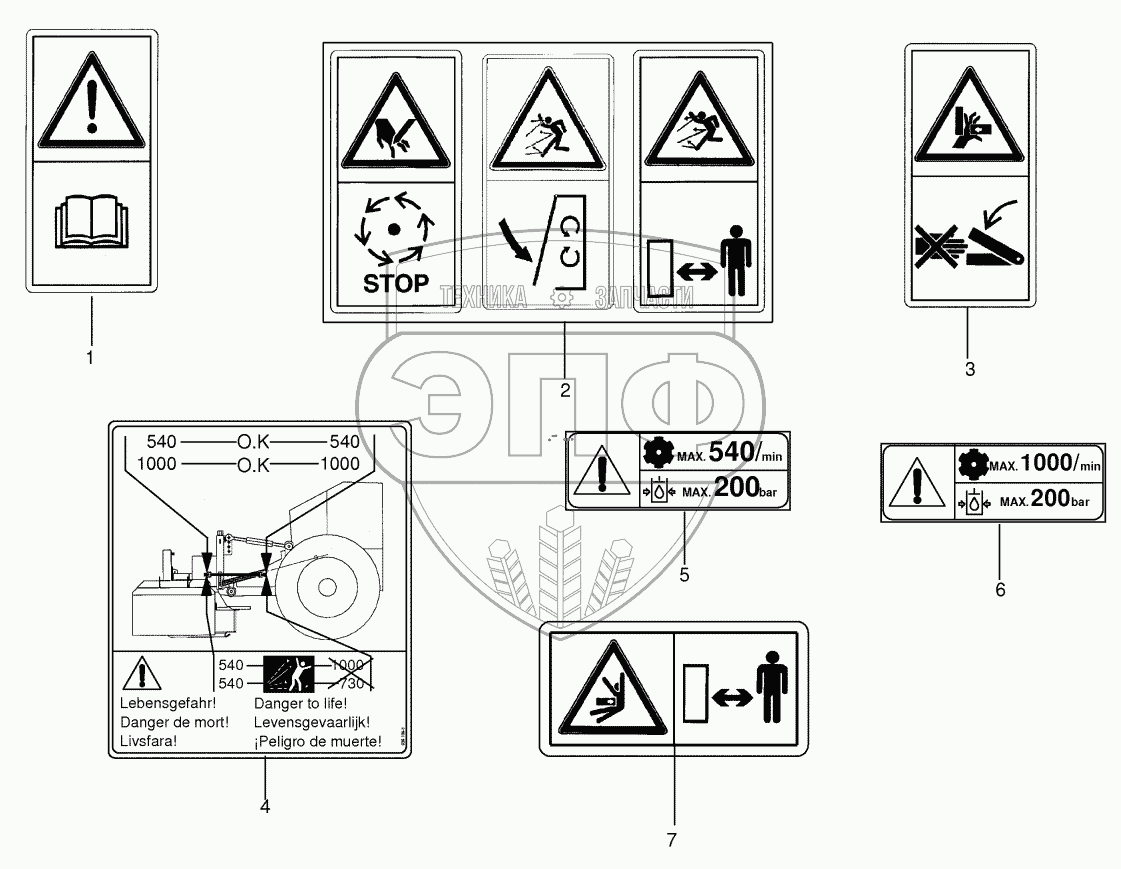 Каталог запасных частей к технике: KRONE EasyCut F360M. Warning signs