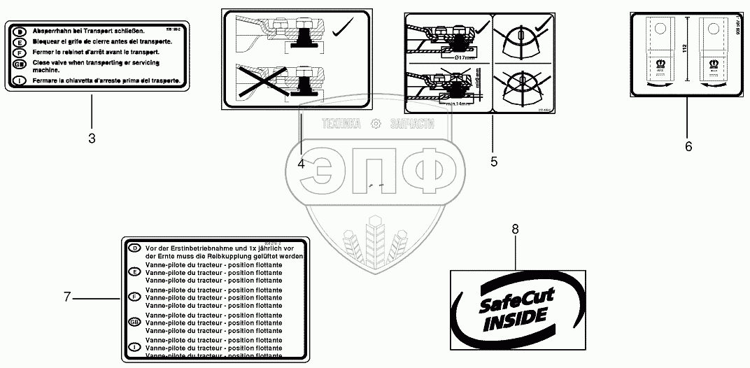 Каталог запасных частей к технике: KRONE EC280/320. General information labels