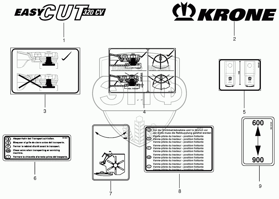 Каталог запасных частей к технике: KRONE EC280CV/320CV/C280CRI. General information labels