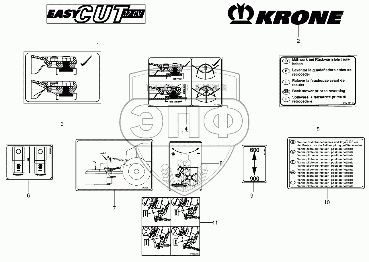Каталог запасных частей к технике: KRONE EC28CV/32CV/32CV-F. General information labels