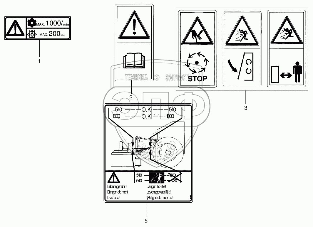 Каталог запасных частей к технике: KRONE EC28CV/C32CV/32CV-F. Warning signs