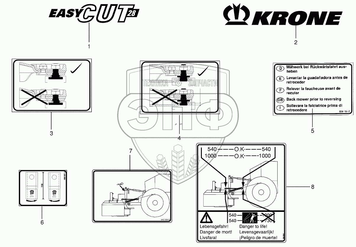 Каталог запасных частей к технике: KRONE EC 28/32. General information labels