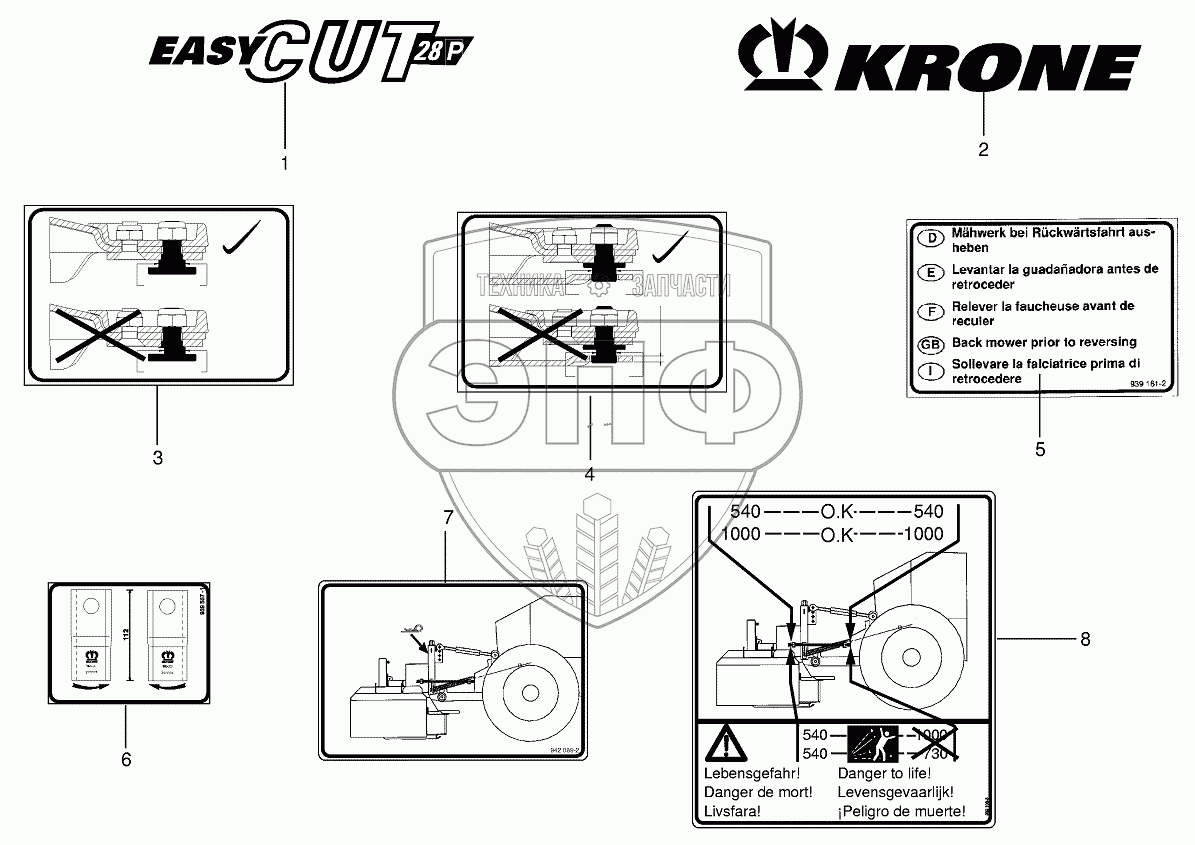 Каталог запасных частей к технике: KRONE EC 28/32P. General information labels