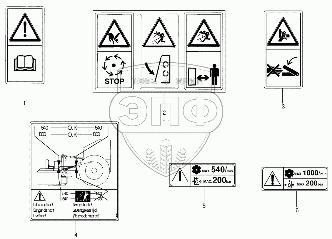 Каталог запасных частей к технике: KRONE EC 28M. Warning signs