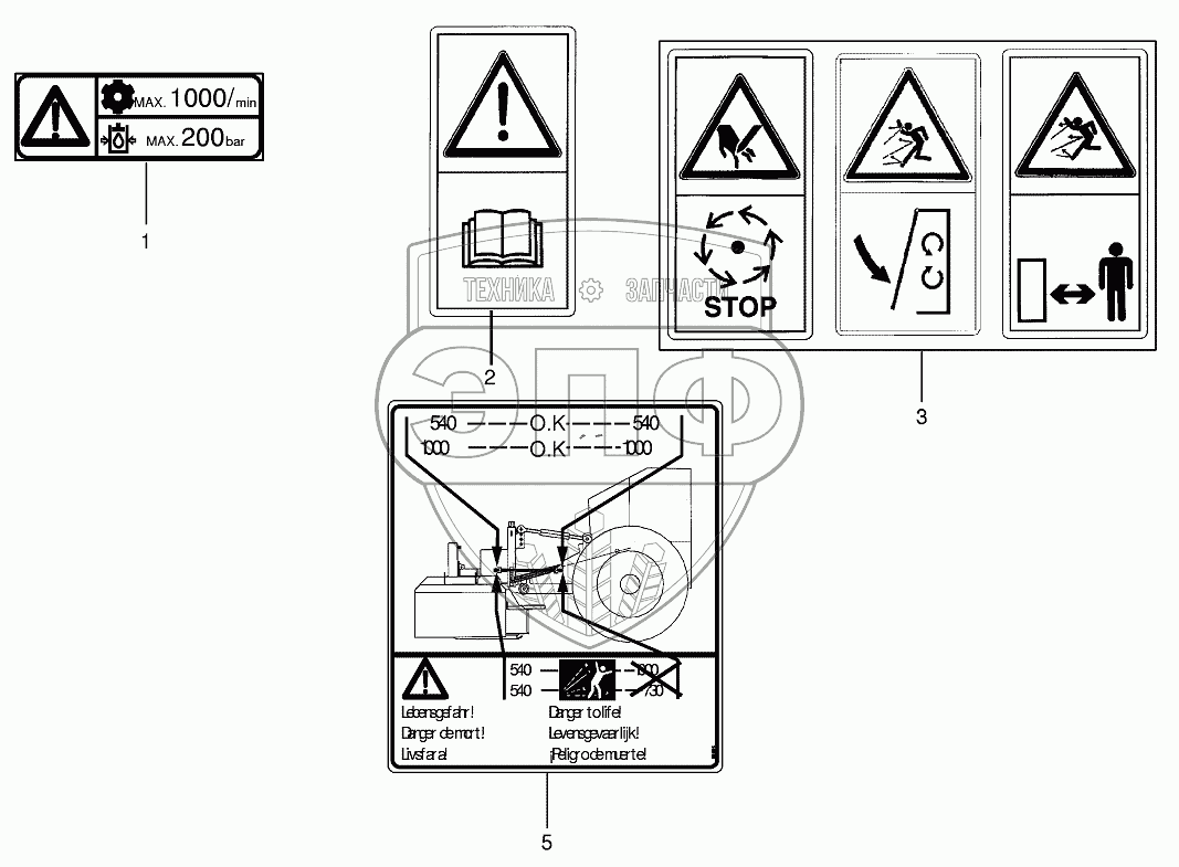 Каталог запасных частей к технике: KRONE EC 32CRI. Warning signs