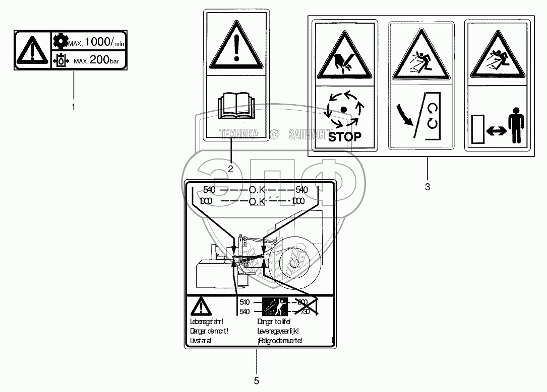 Каталог запасных частей к технике: KRONE EC 32CRI. Warning signs