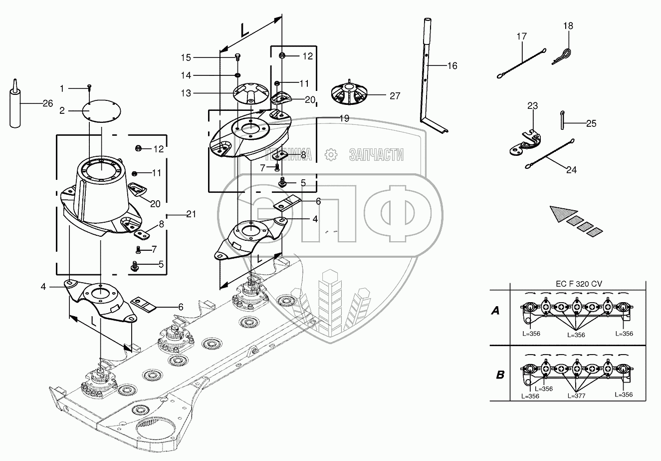 | 21 | 200376010 | Mower drum (356) screw connection | Нет на складе | |