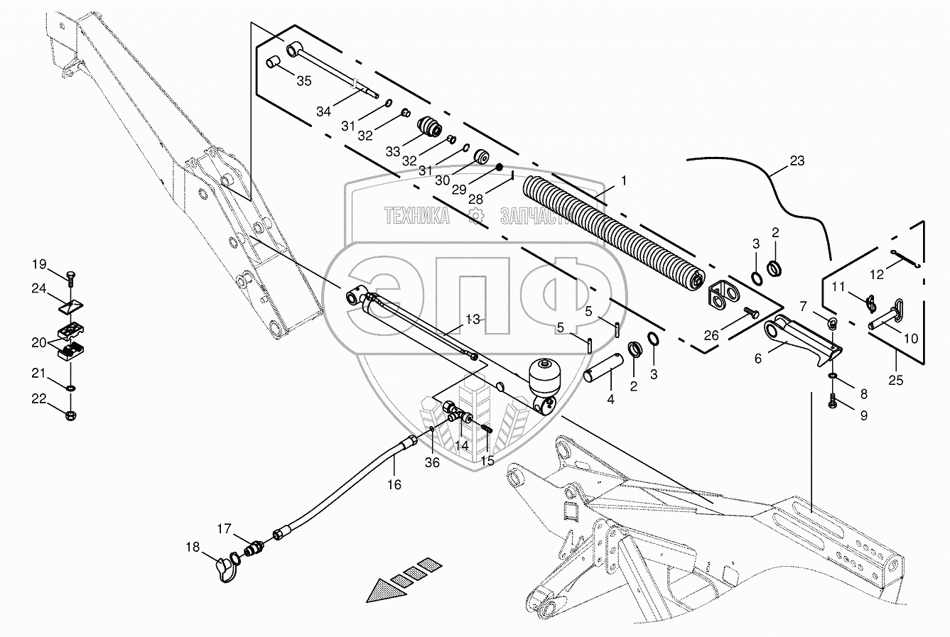 Каталог запасных частей к технике: KRONE EC R280. Spring compensation/Hydraulics