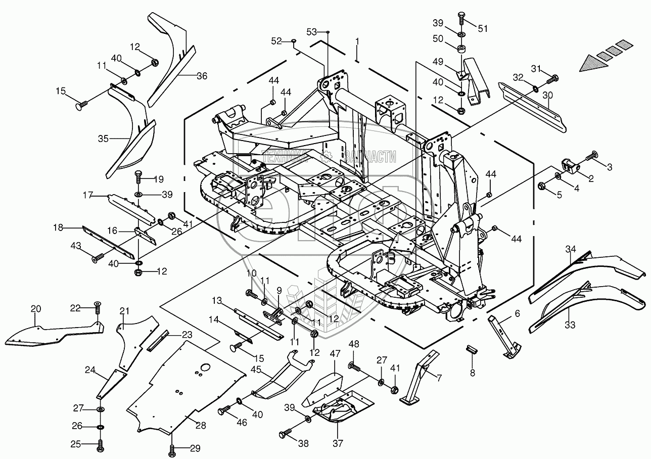 Каталог запасных частей к технике: KRONE ECollect753, 903, 1053. Frame central/Mounting parts