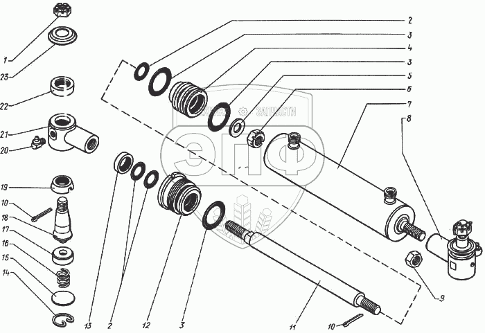 Каталог запасных частей к технике: КЗК Енисей 1200. Гидроцилиндр управляемых колес ГА 25000