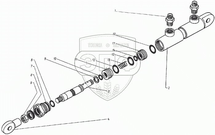 Каталог запасных частей к технике: КЗК Енисей 1200. Гидроцилиндр выноса мотовила ГА 43000