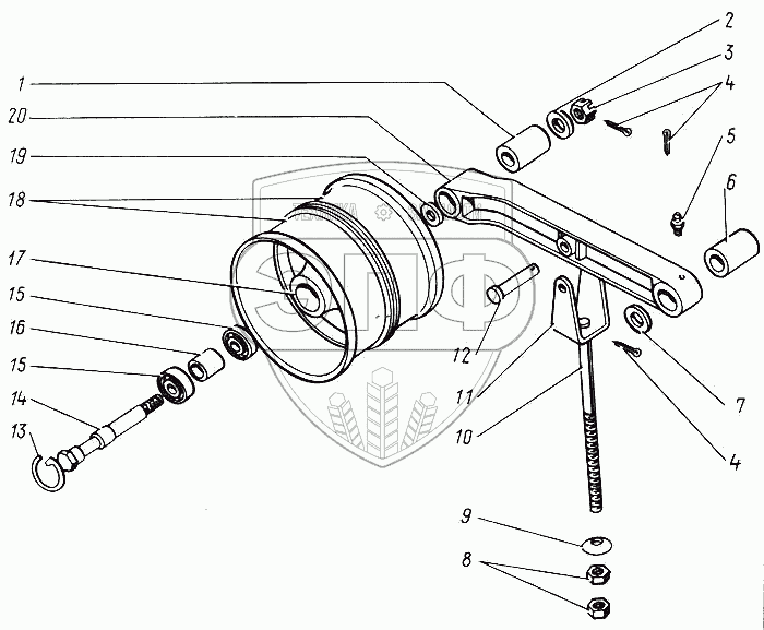 Каталог запасных частей к технике: КЗК Енисей 1200. Шкив натяжной КД 3-19Б
