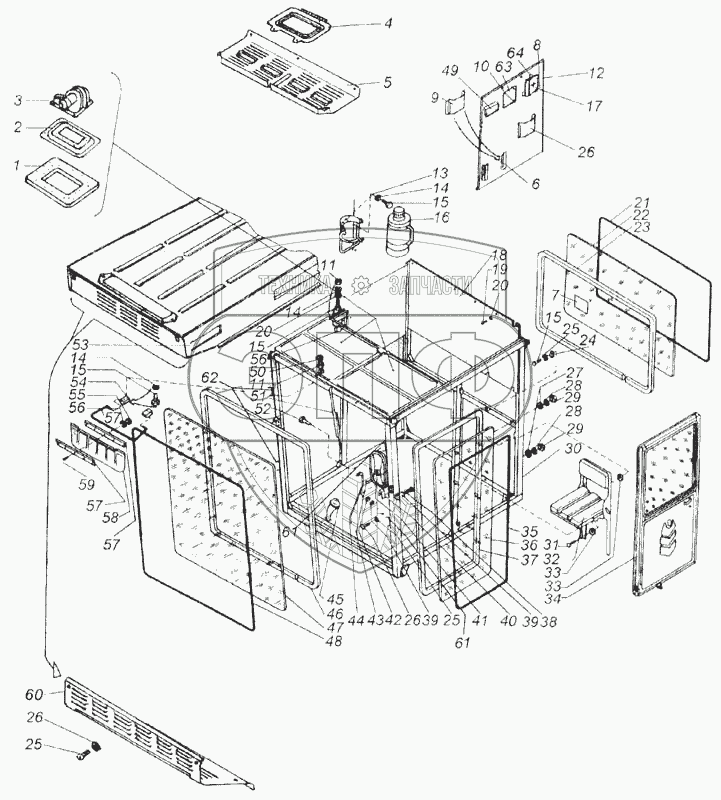 Каталог запасных частей к технике: КЗК Енисей 1200М. Кабина (К15.00.00.000Г)