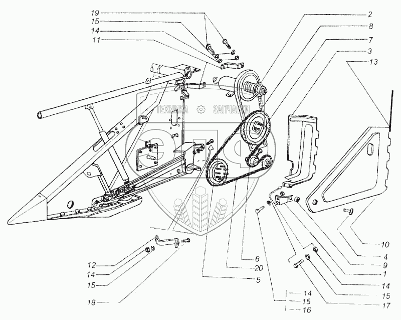 Каталог запасных частей к технике: КЗК Енисей 1200М. Механизм левой стороны жатки