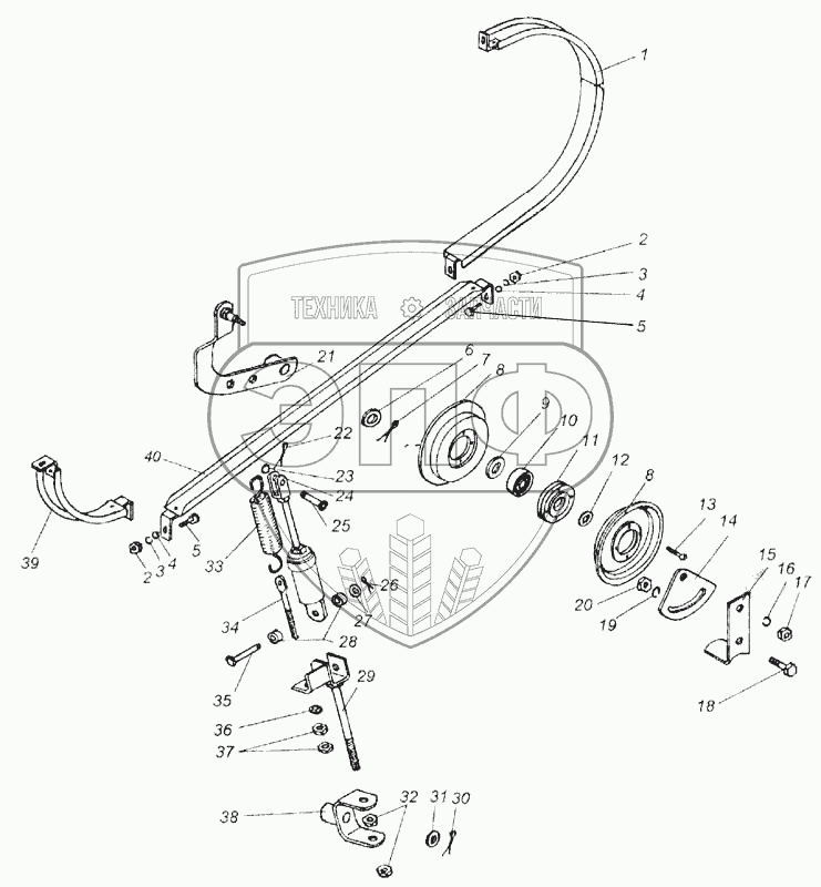 Каталог запасных частей к технике: КЗК Енисей 1200М. Механизм отключения жатки (КДМ2-44Г)