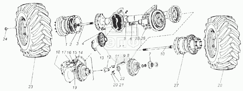 Каталог запасных частей к технике: КЗК Енисей 1200М. Мост ведущих колес (54Б-4)