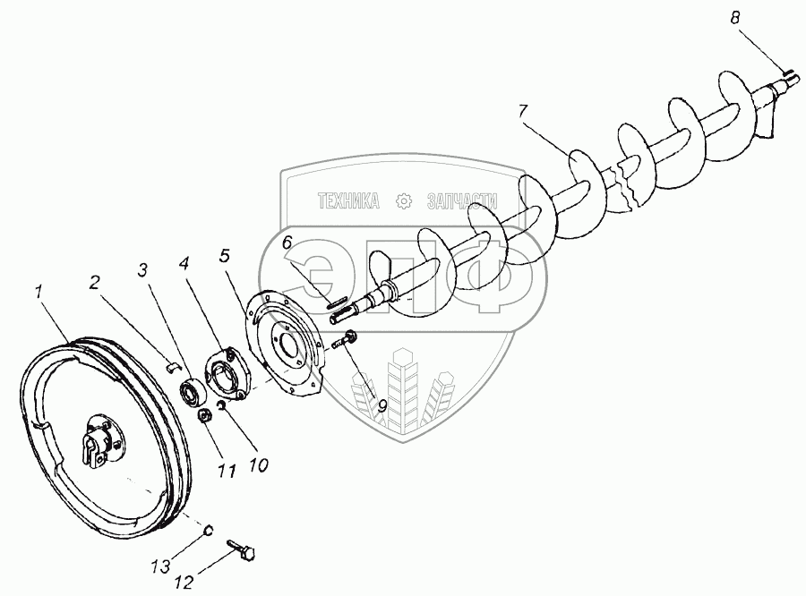 Каталог запасных частей к технике: КЗК Енисей 1200М. Шнек бункера (КДМ6-2)
