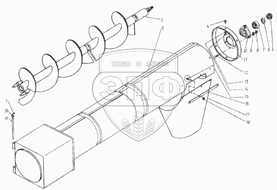 Каталог запасных частей к технике: КЗК Енисей 1200М. Шнек выгрузной (КДМ6-44-01)