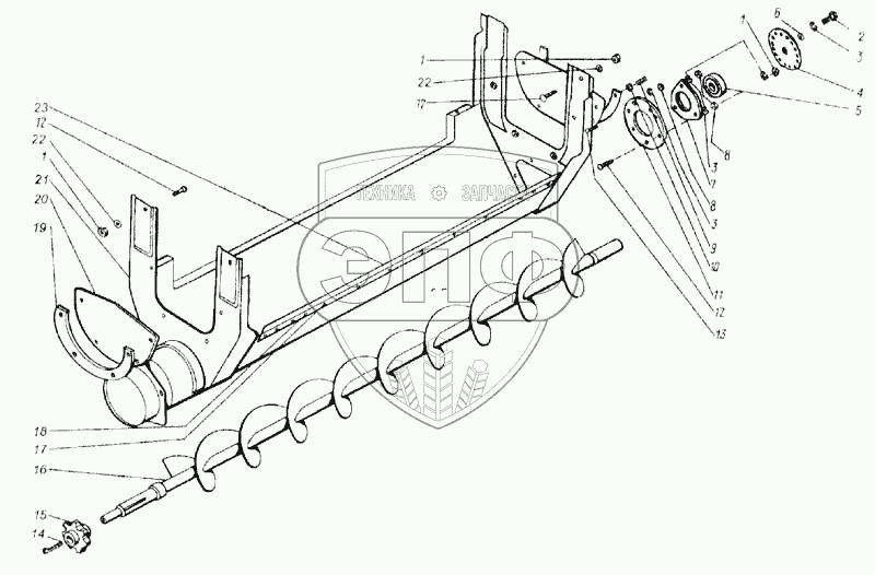 Каталог запасных частей к технике: КЗК Енисей 1200М. Шнек зерновой (КДМ2-21Д)
