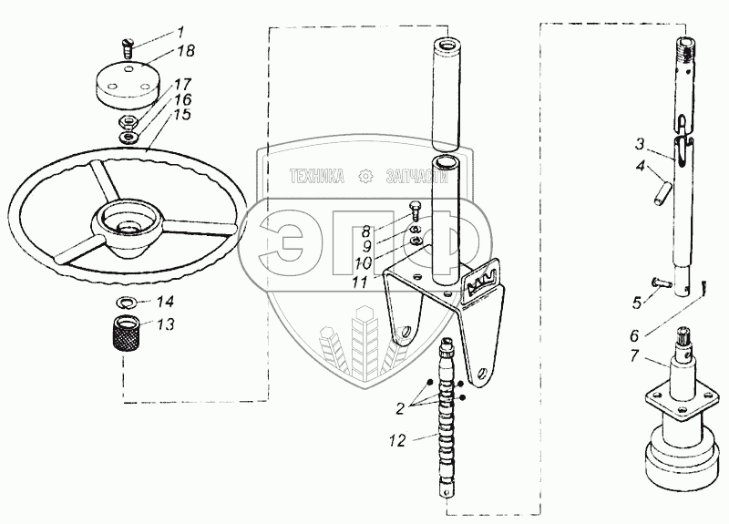 Каталог запасных частей к технике: КЗК Енисей 1200М. Управление рулевое (КДМ5-12Д)